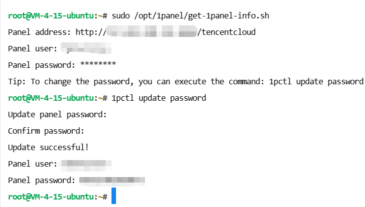 1pctl update username来输入自己的用户名现在进入面板,地址:http://IP:面板端口/tencentcloud