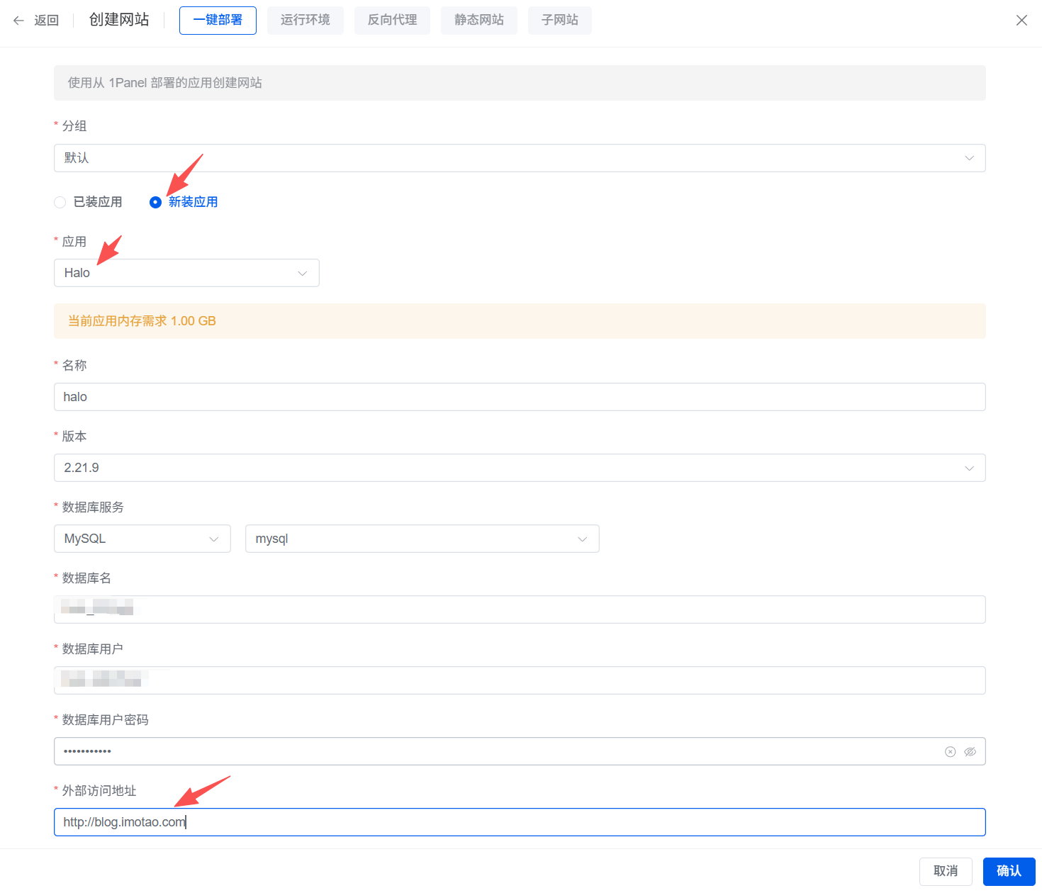 3.1 在1Panel中部署Halo