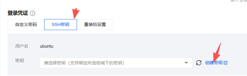 - 登陆凭证选择-SSH密钥-创建密钥-下载保存