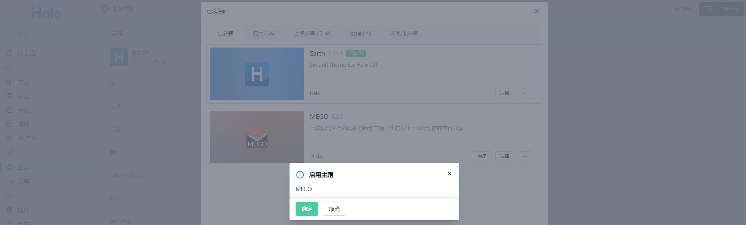 - Halo后台 → 「主题」→ 「主题商店」。