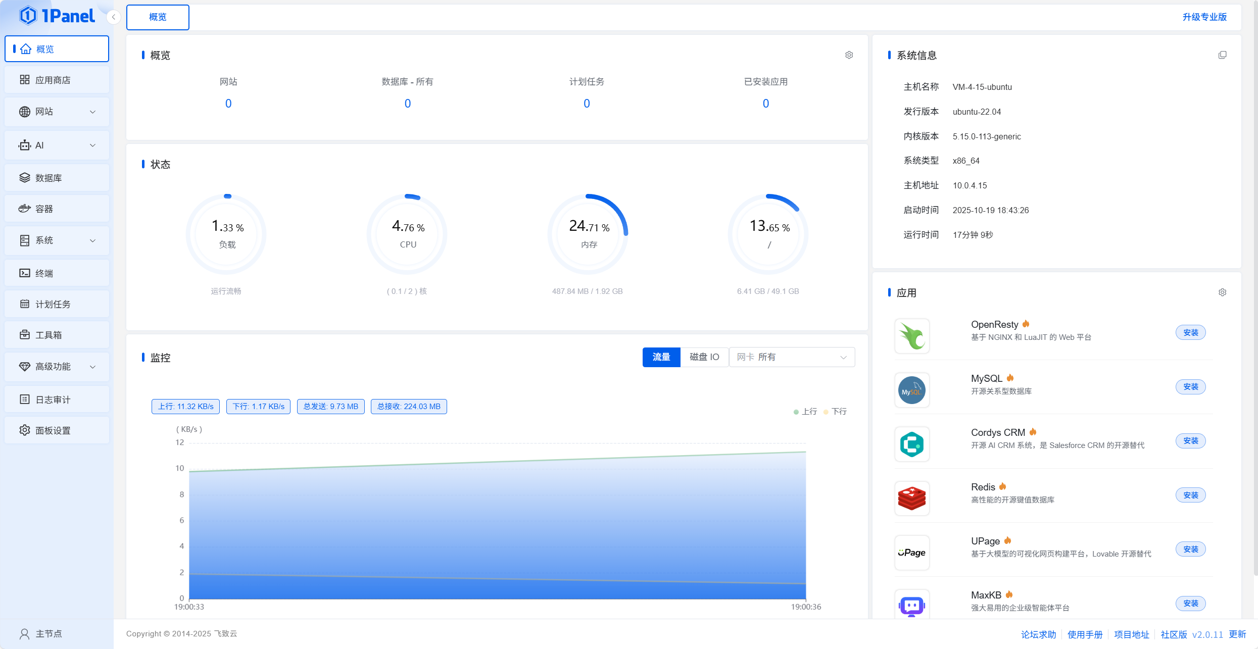 接下来,我们登陆1Panel面板
