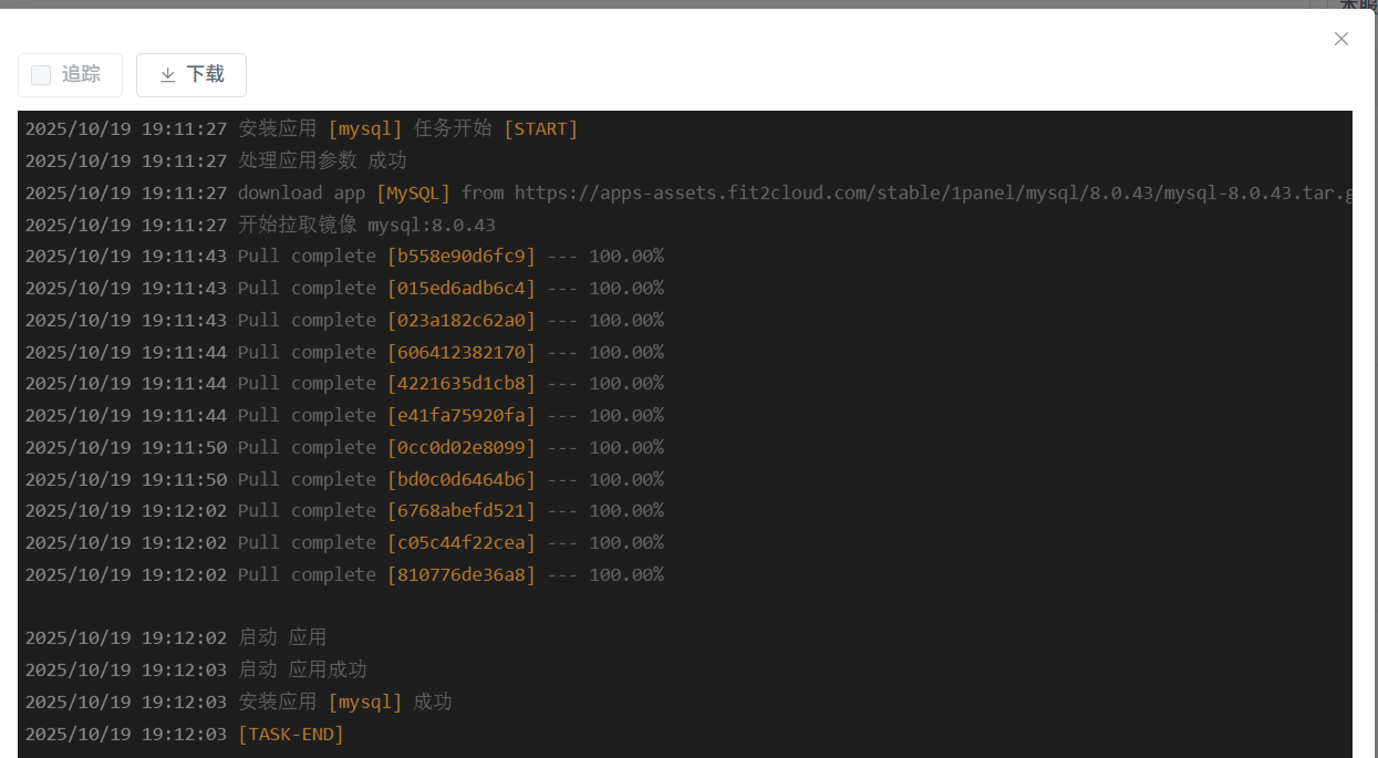 }- 点击「应用商店」→ 数据库「mysql」→ 开启「端口外部访问」→ 点击「安装」