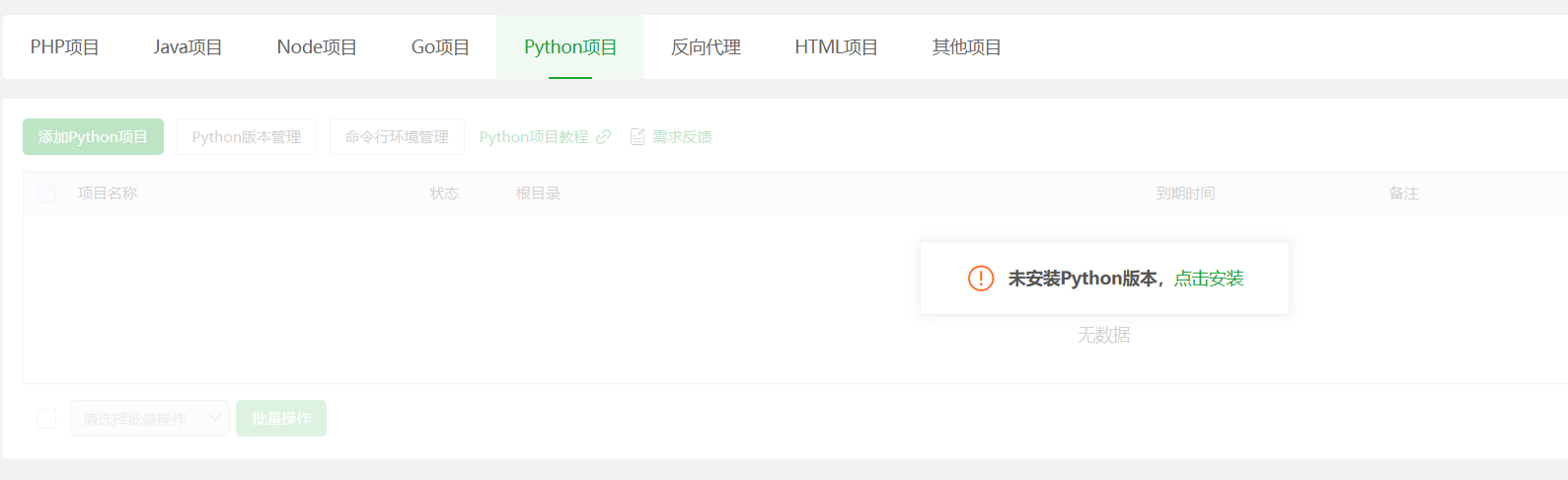最后刷新页面,并点击Python版本管理