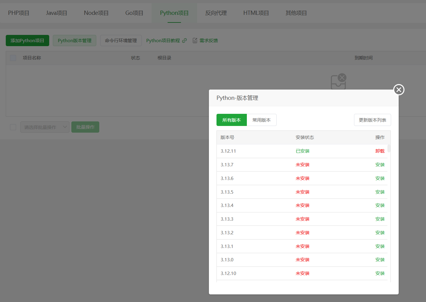 File "/www/server/panel/class/projectModel/btpyvm.py", line 508, in _get_versions_by_cloud