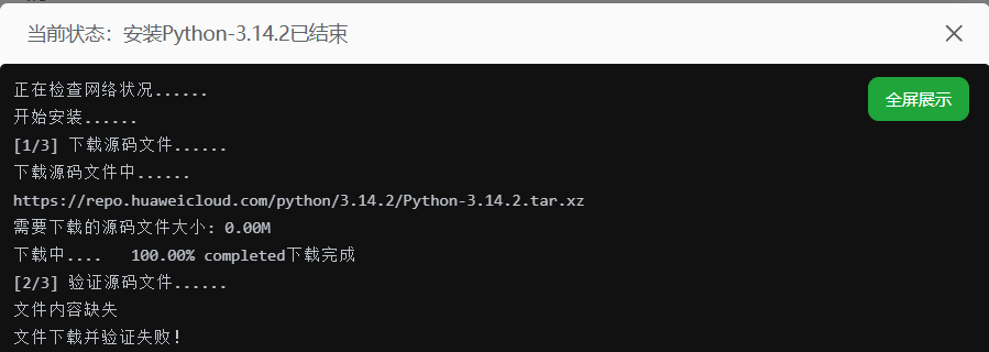 未找到本地记录文件,将向云端请求Python版本数据,这可能需要一段时间,请稍等正在检查网络状况......解析错误正在检查网络状况......