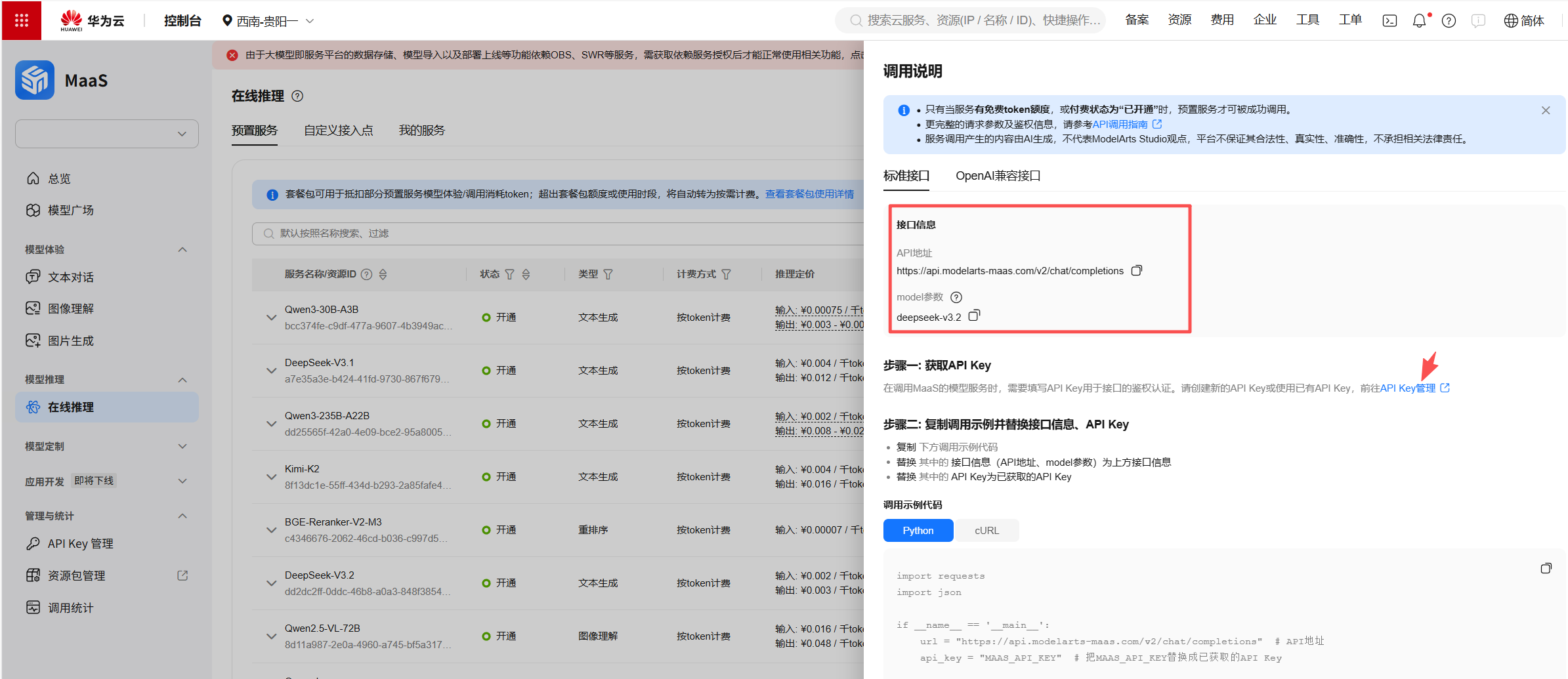 API地址:https://api.modelarts-mass.com/v2/chat/completions