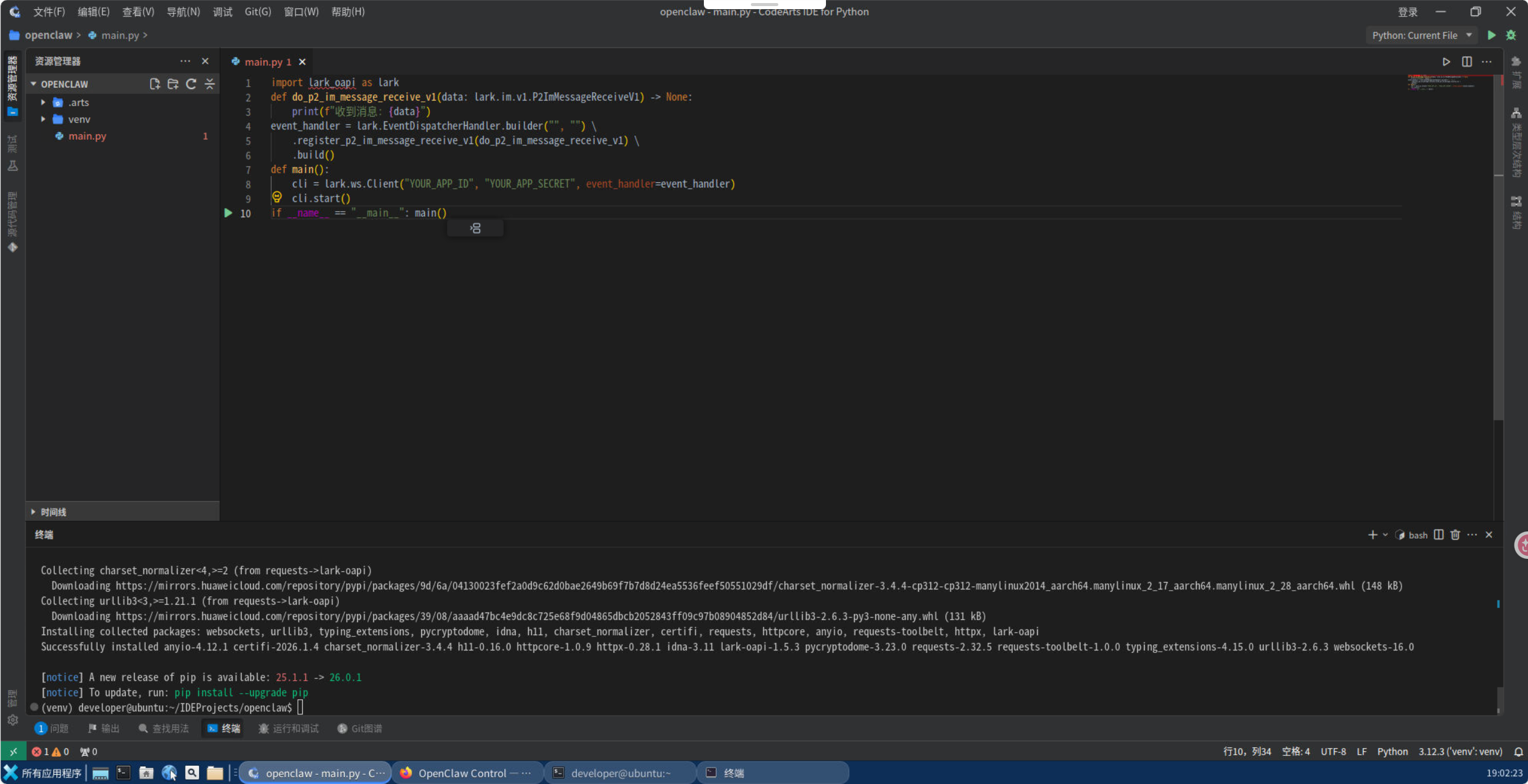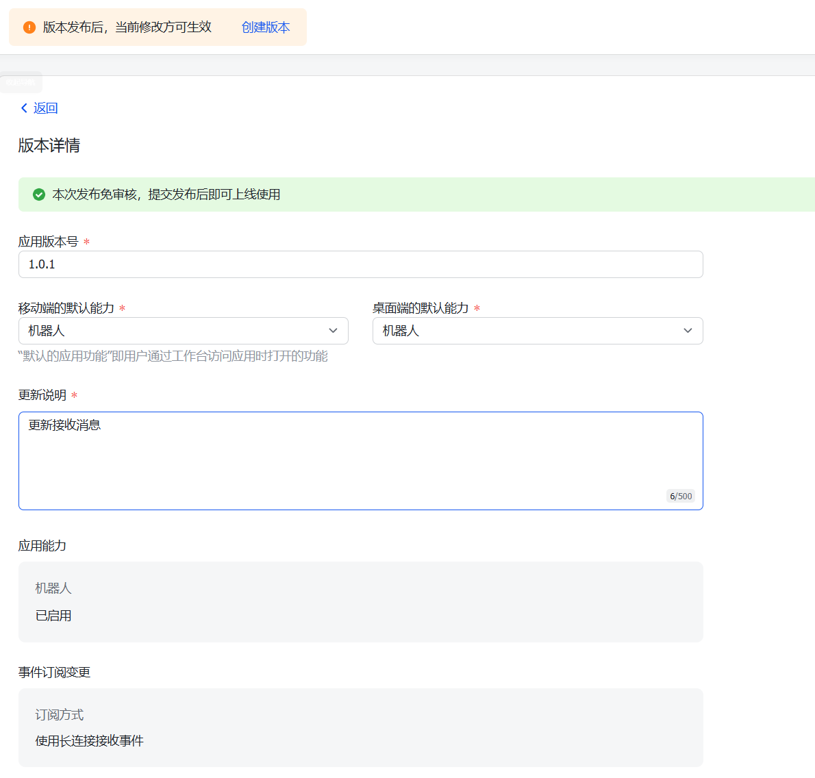 注意:与飞书建立长连接时,此工程不可停止运行。